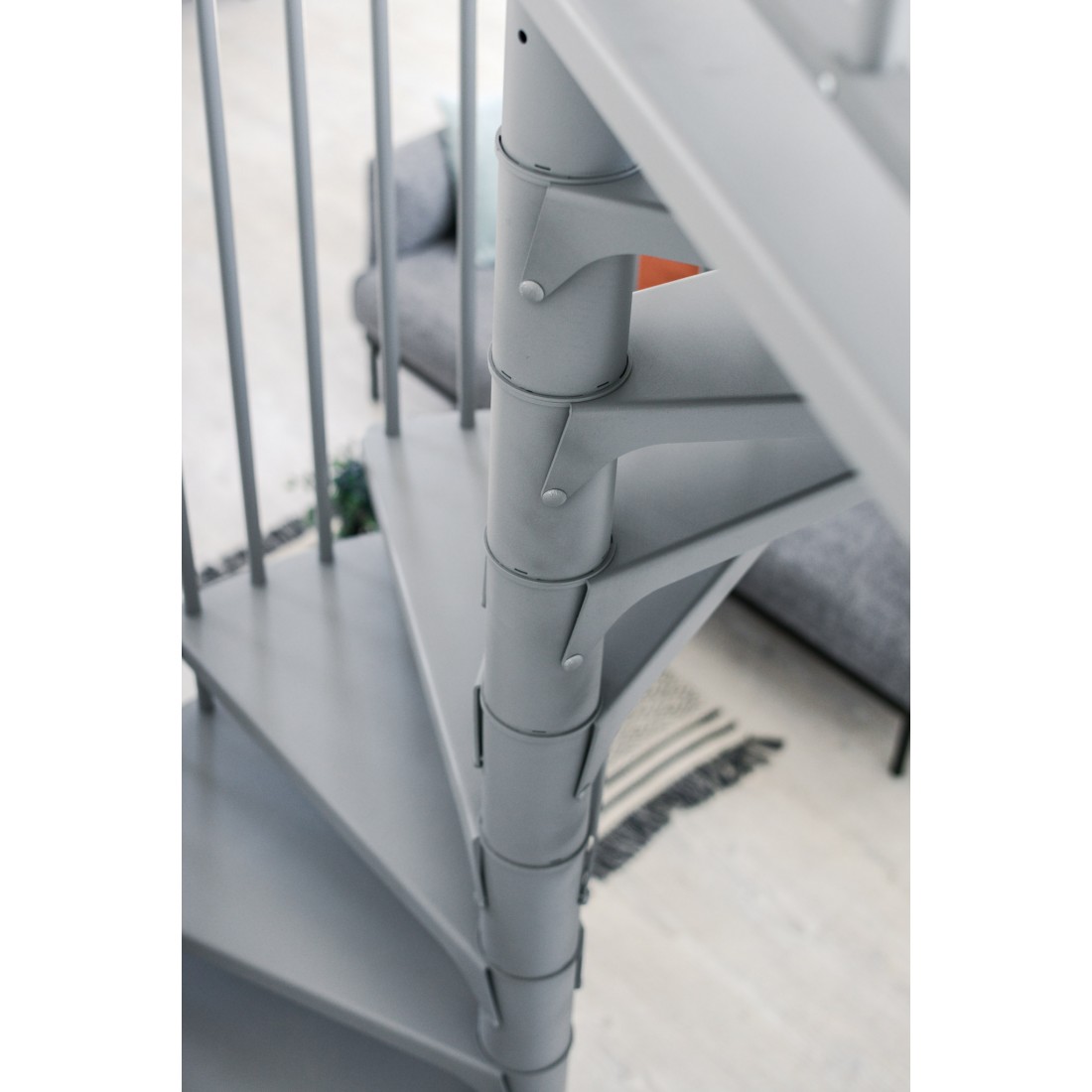 Modernaus dizaino, tvirti plieno laiptai kartu su patogiu PVC porankiu. Puikiai tinka pramoninio stiliaus interjerui. Siekiant apsaugoti nuo nusidėvėjimo ir suteikti dar gražesnę išvaizdą, visos metalinės dalys padengtos aukštos kokybės milteline danga.